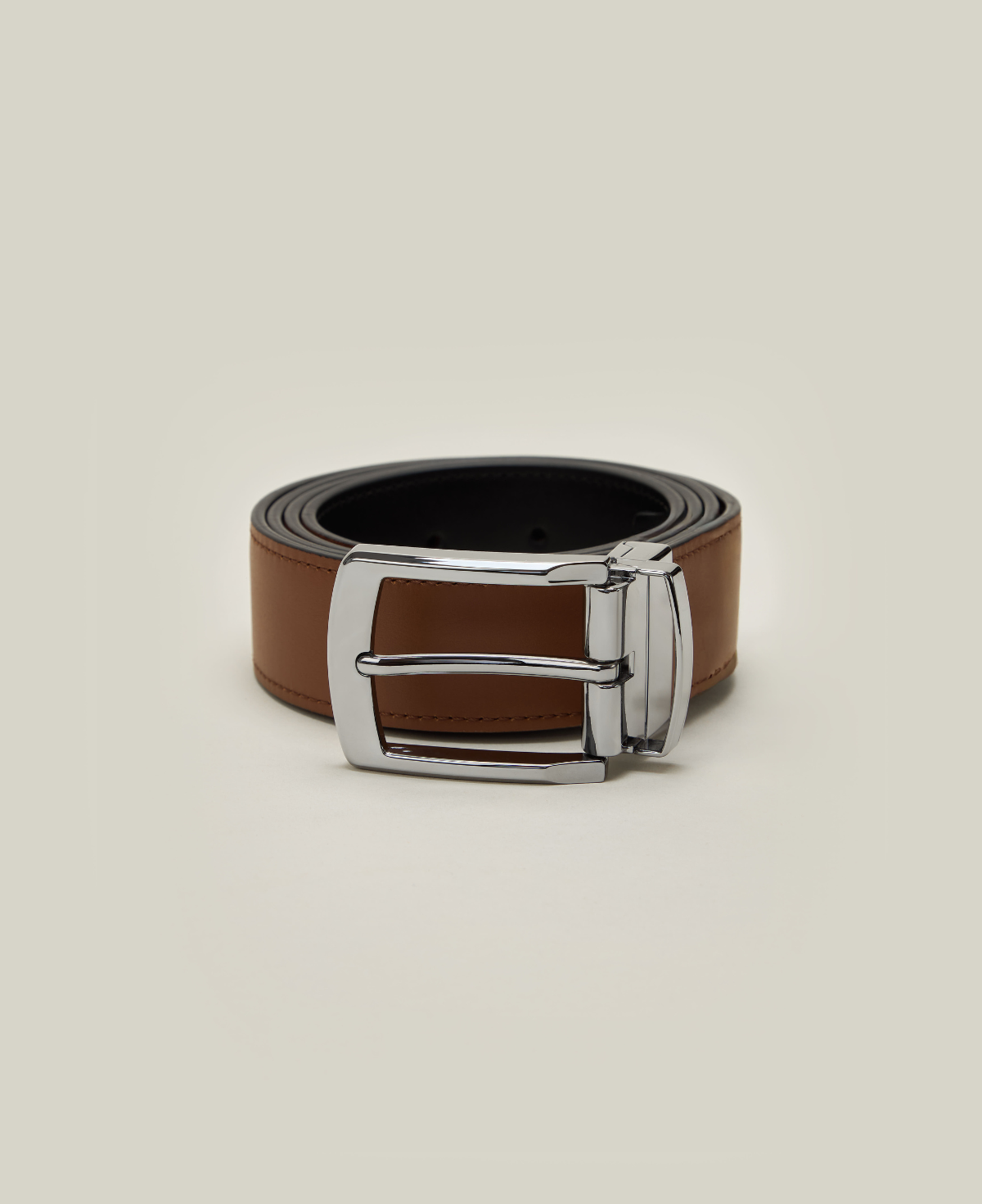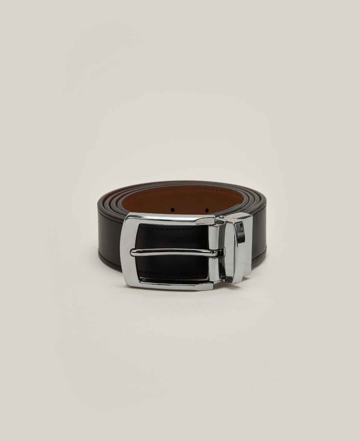 Ceinture Cuir Réversible : Noir Lisse et Camel Lisse