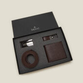 Le Coffret Lupin rassemble tout ce dont un homme a besoin au quotidien, avec élégance et simplicité. Élégant et fonctionnel, il combine ceinture, portefeuille et porte-clés en cuir véritable pour allier style et praticité. Un coffret qui simplifie la vie tout en ajoutant une touche raffinée et masculine à vos essentiels