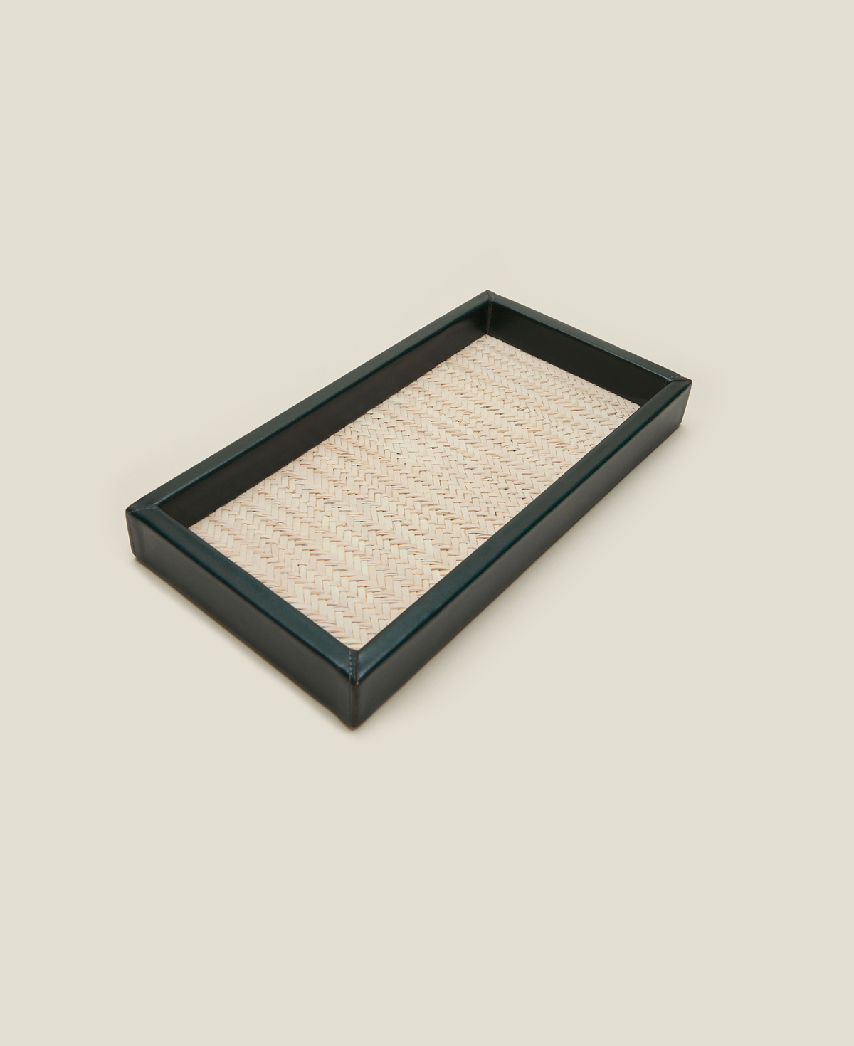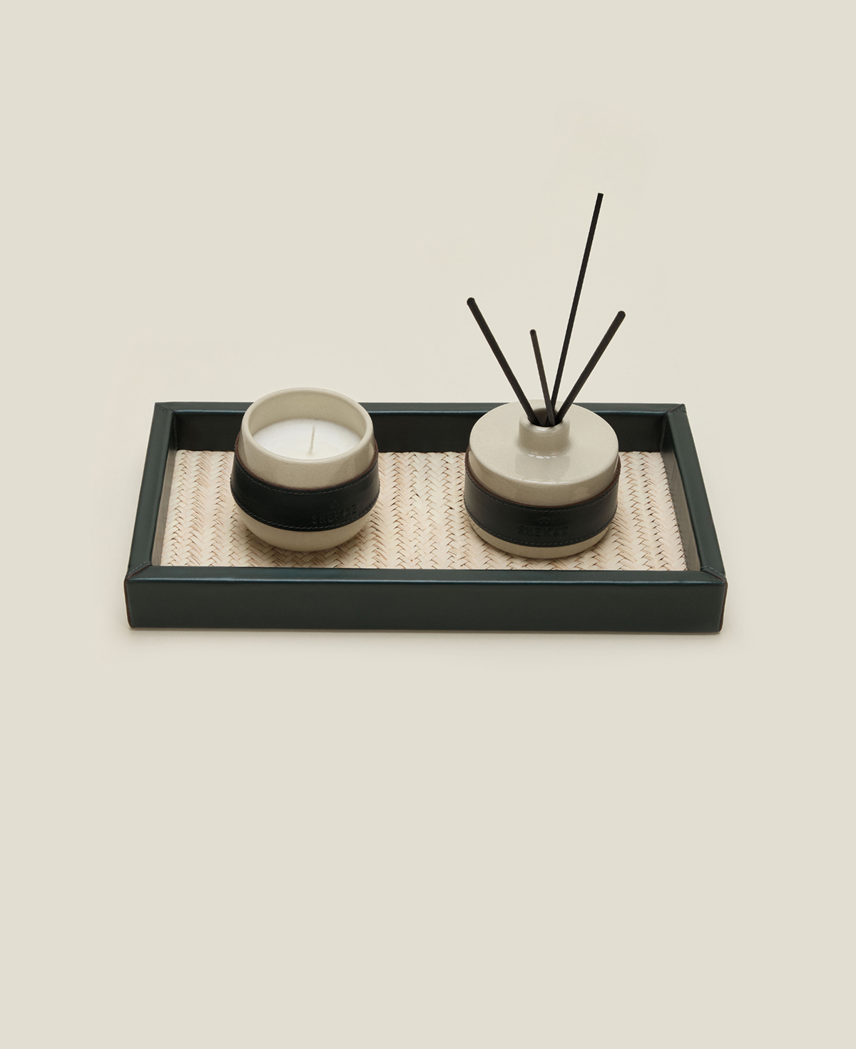 Bougie + Diffuseur de Parfum + Plateau Mélange cuir et feuille de palmier