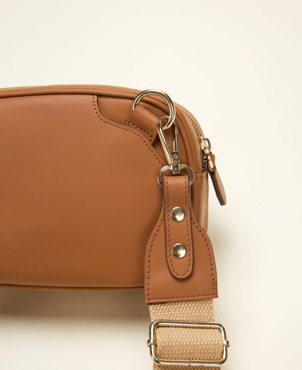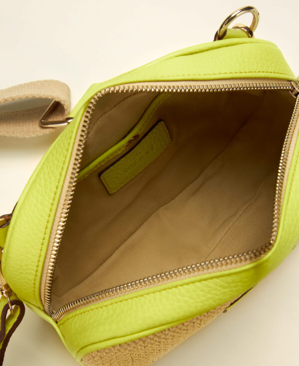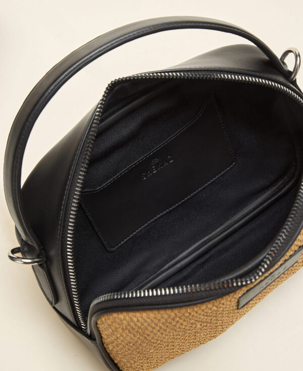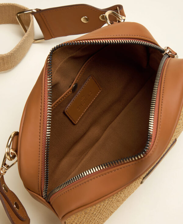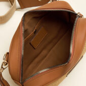 Confectionné dans un mélange de cuir véritable pleine fleur et d’osier naturel, le sac crossbody est équipé d’une bandoulière ajustable pour plusieurs façons de le porter.Compact et pensé pour accueillir vos essentiels du quotidien