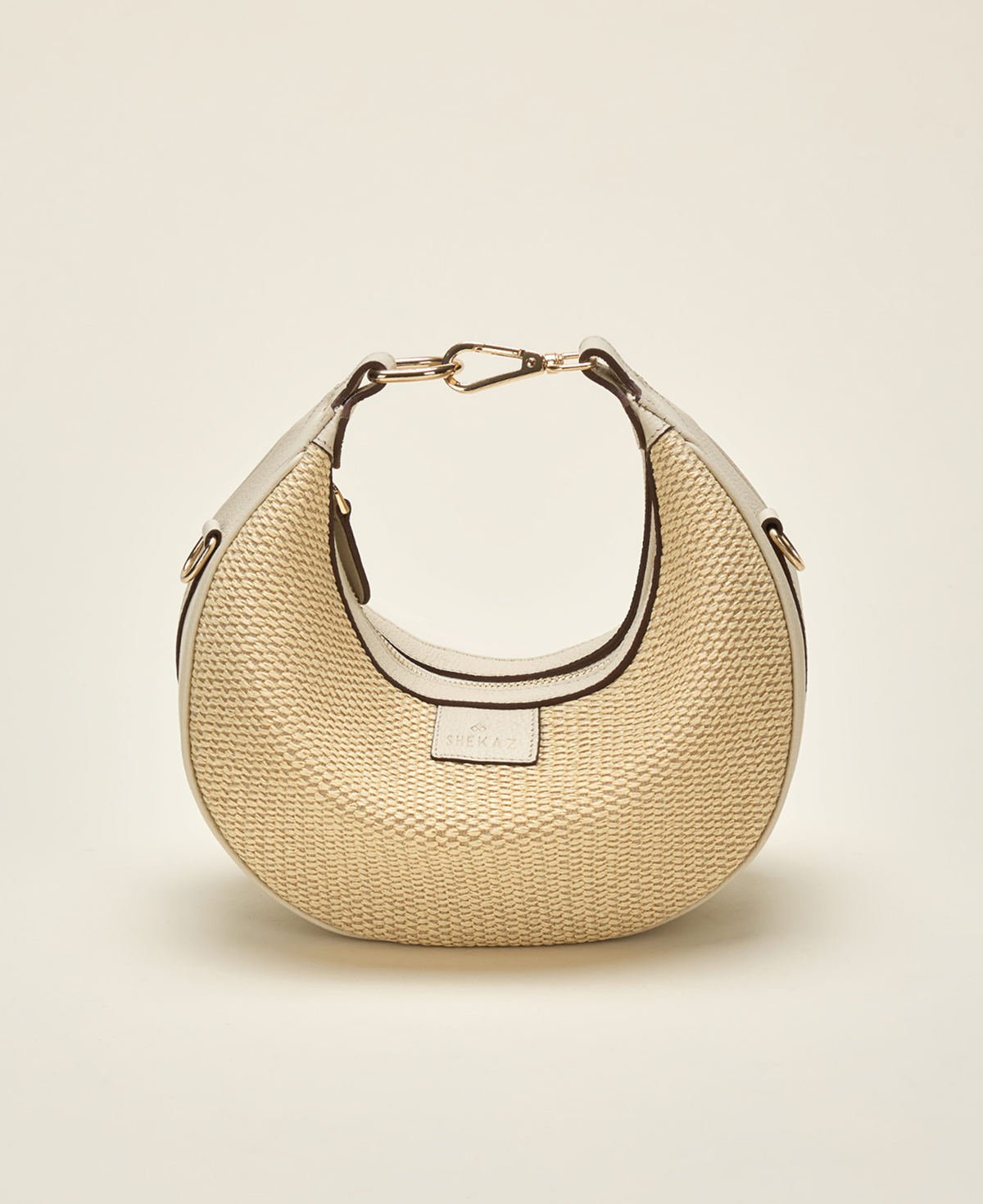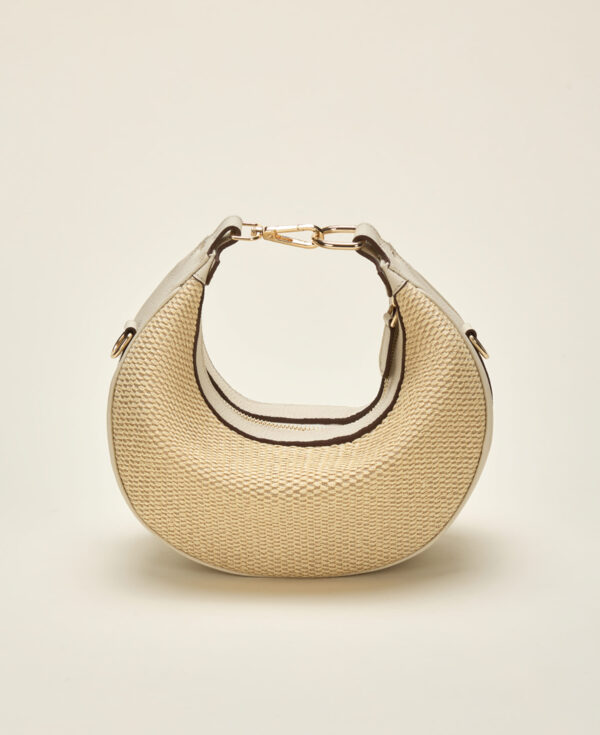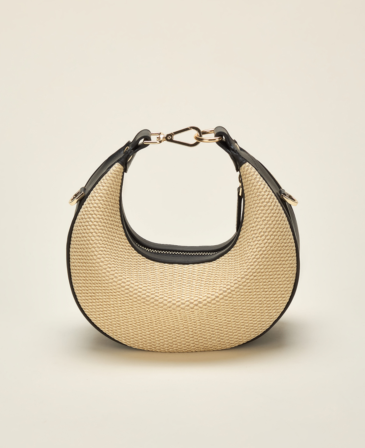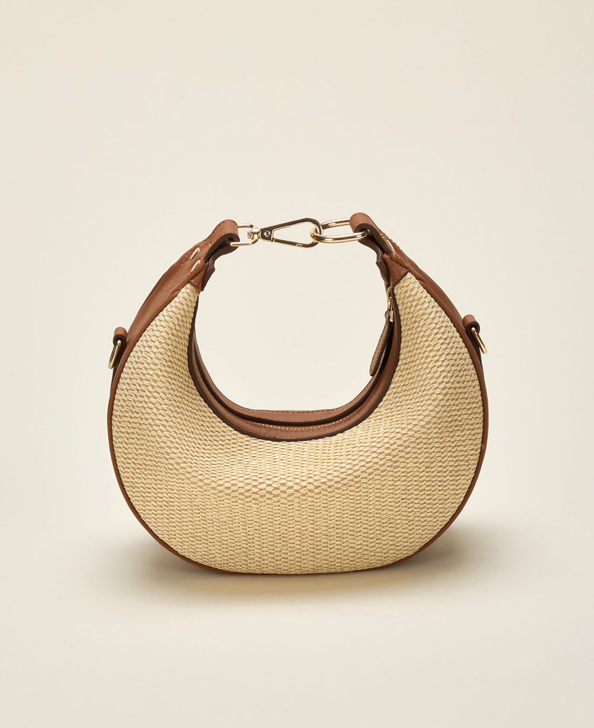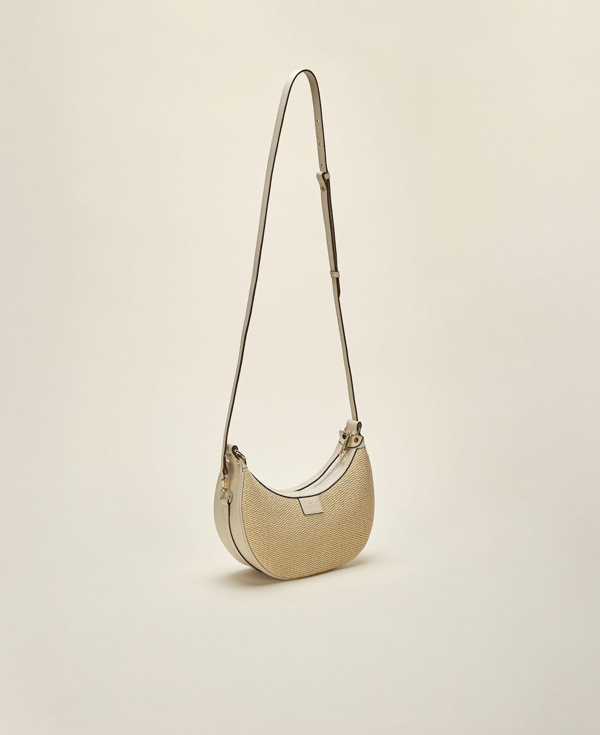 Le sac Luna Mélange allie cuir véritable et osier naturel pour un style élégant et lumineux. Sa forme arrondie inspirée de la lune et ses options de port multiples en font un compagnon raffiné et pratique au quotidien.