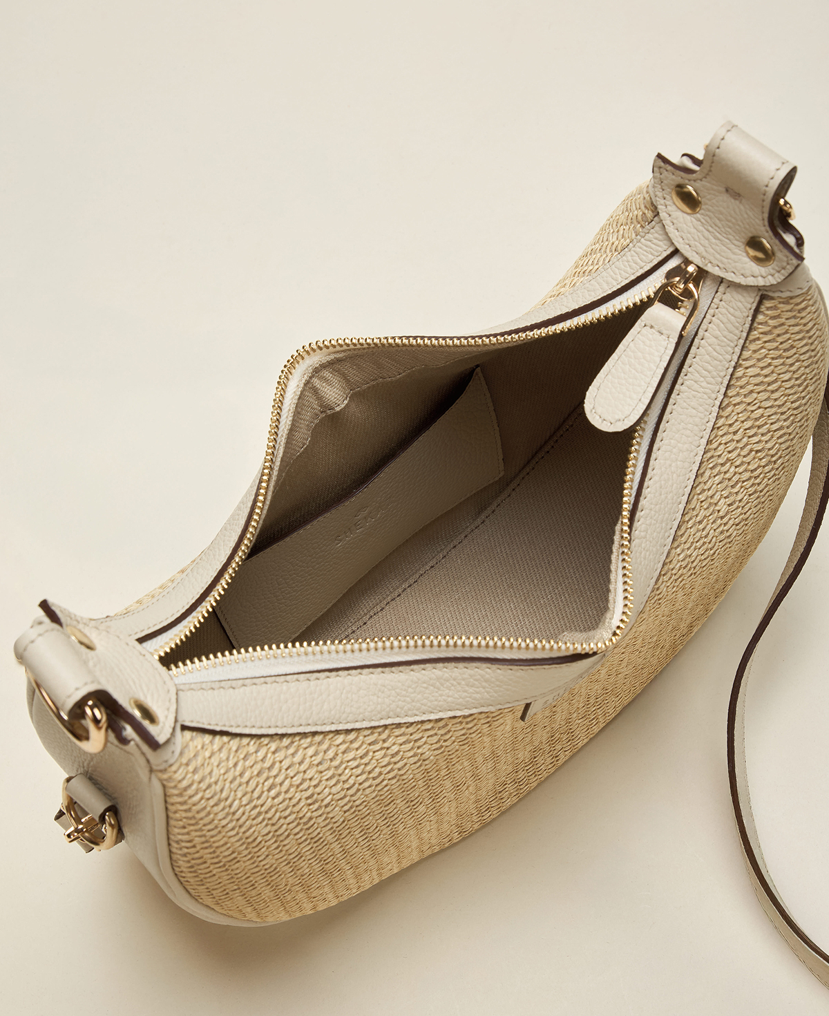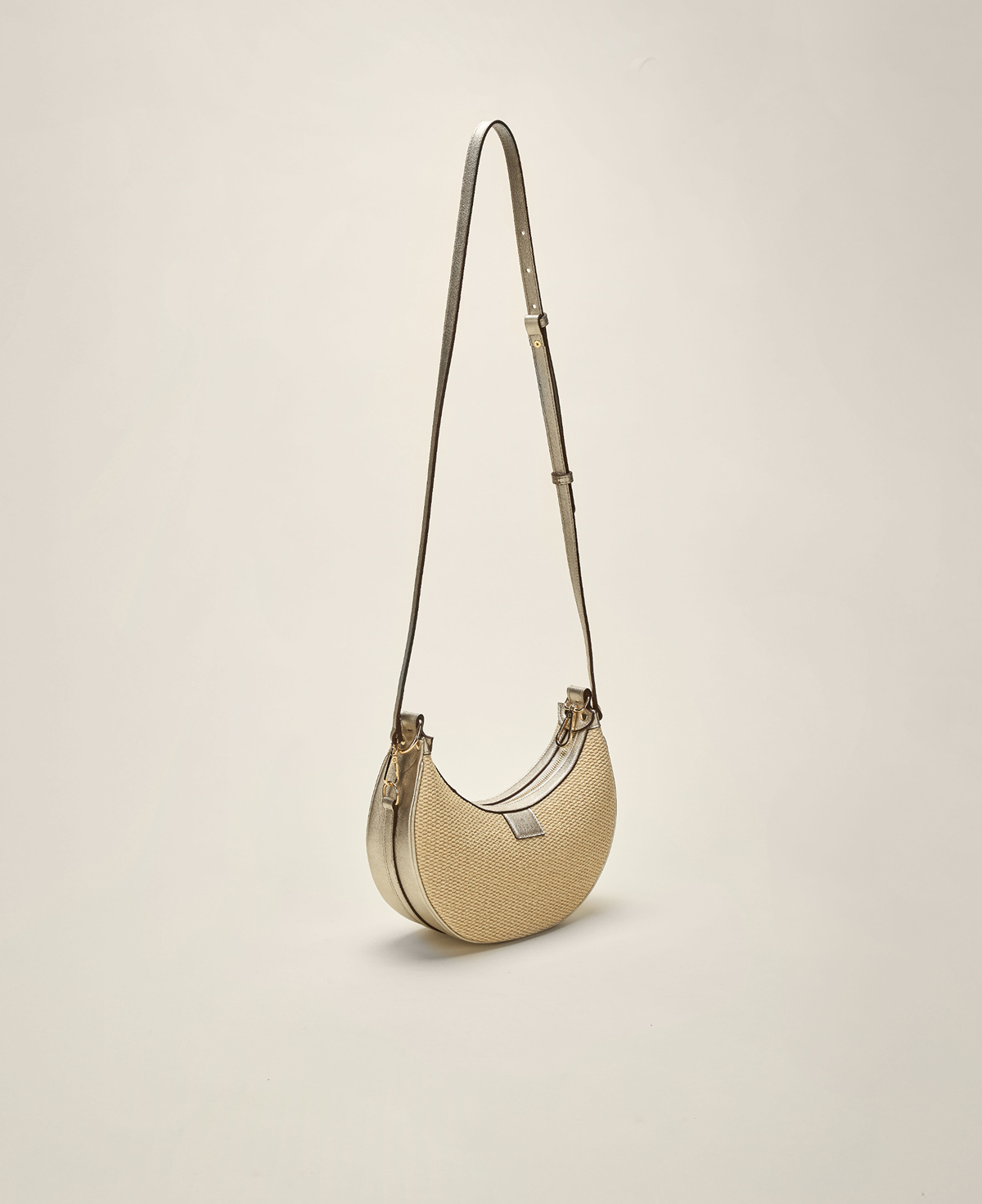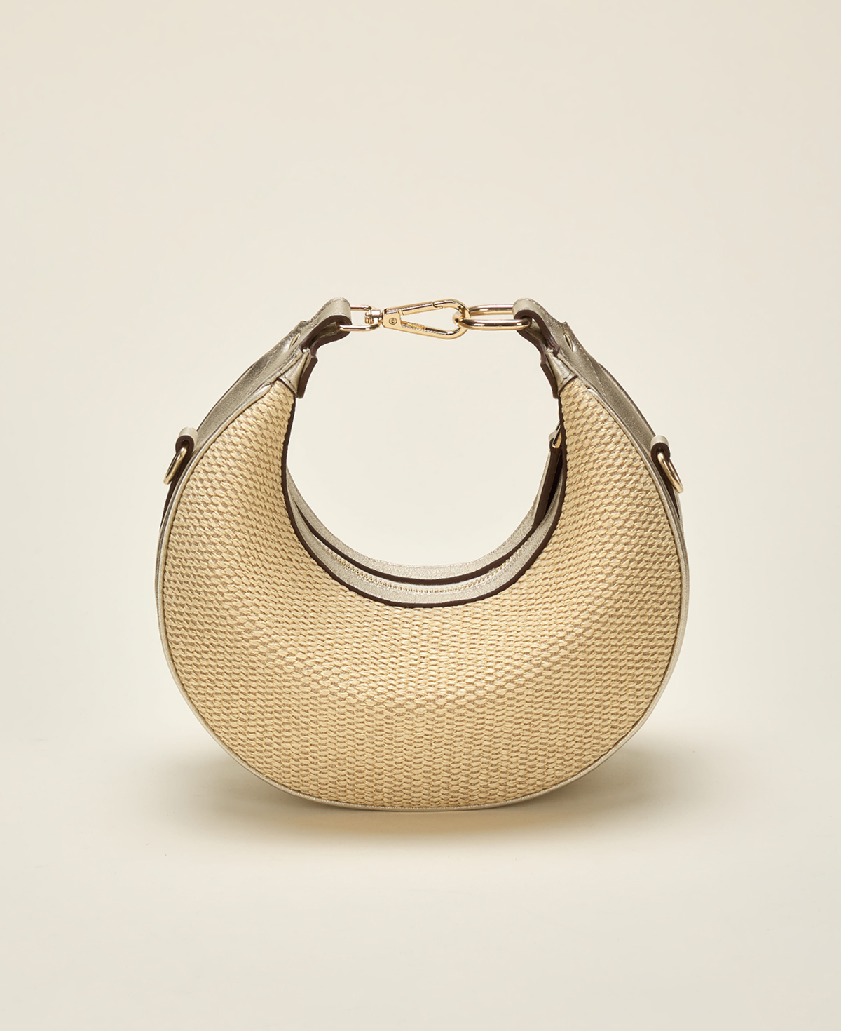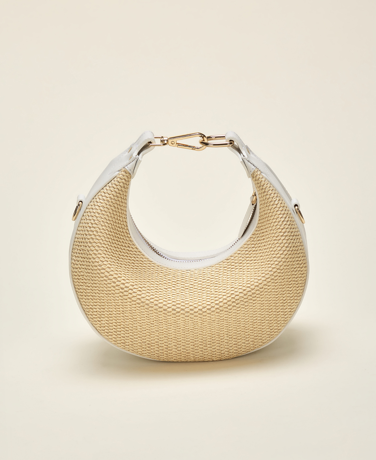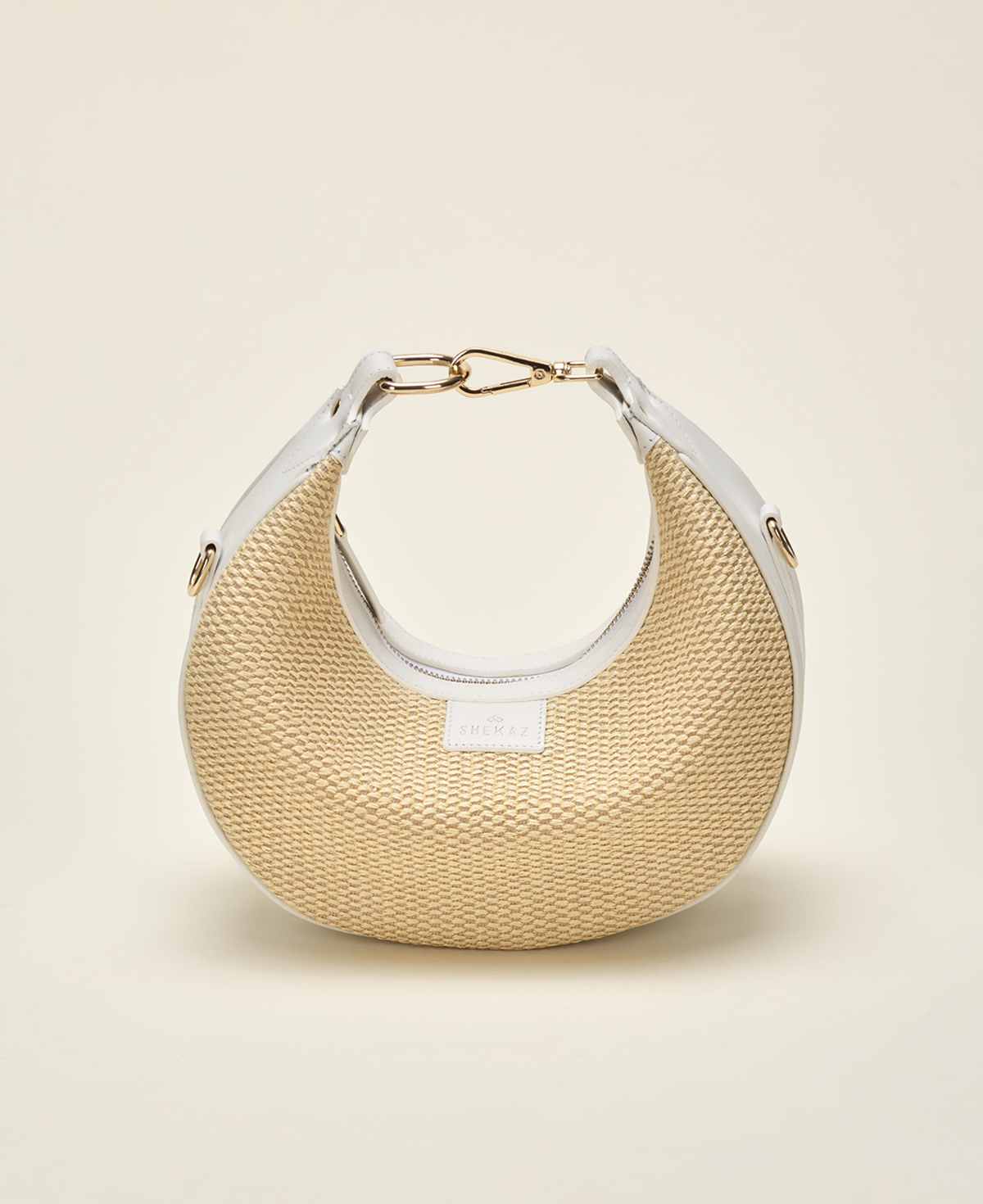Le sac Luna Mélange allie cuir véritable et osier naturel pour un style élégant et lumineux. Sa forme arrondie inspirée de la lune et ses options de port multiples en font un compagnon raffiné et pratique au quotidien.