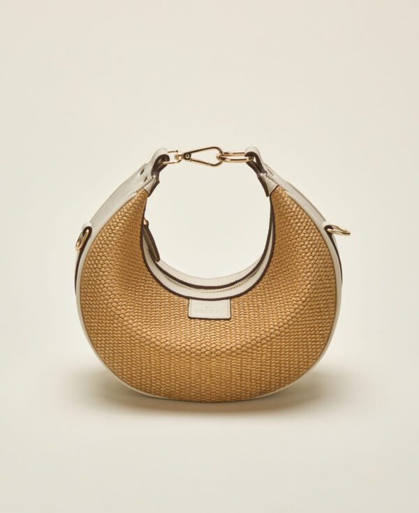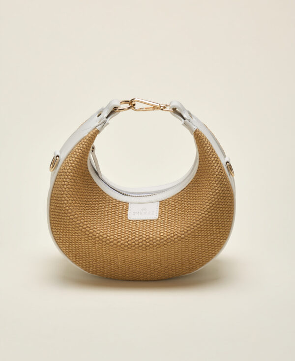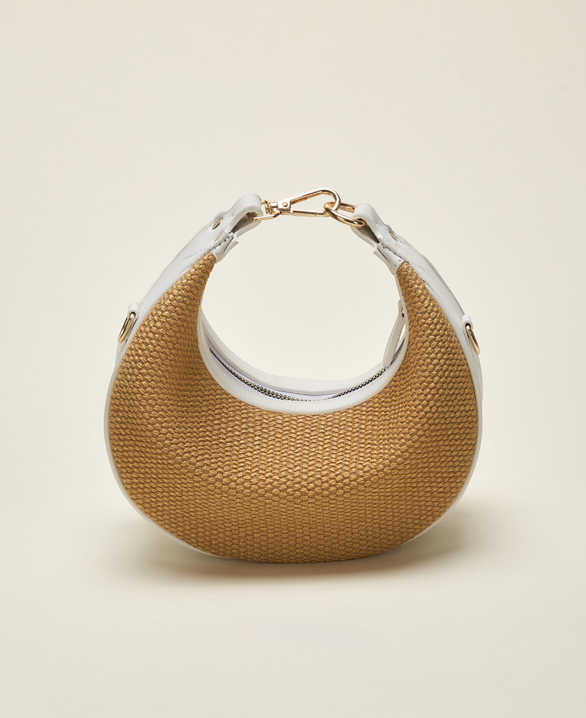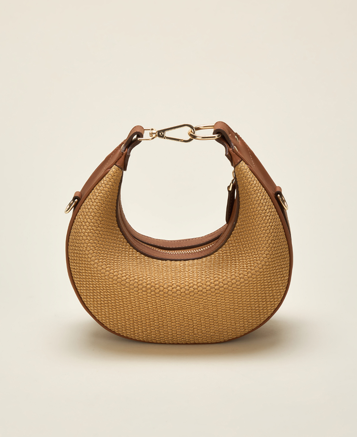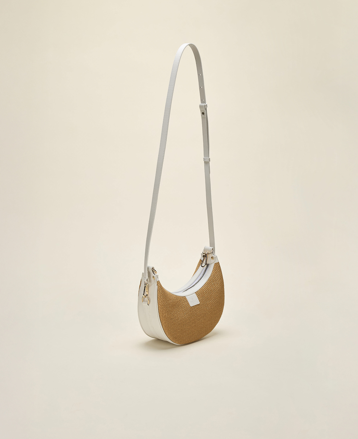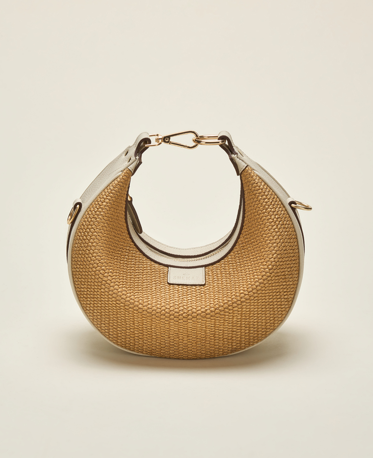 Le sac Luna Mélange allie cuir véritable et osier naturel pour un style élégant et lumineux. Sa forme arrondie inspirée de la lune et ses options de port multiples en font un compagnon raffiné et pratique au quotidien.