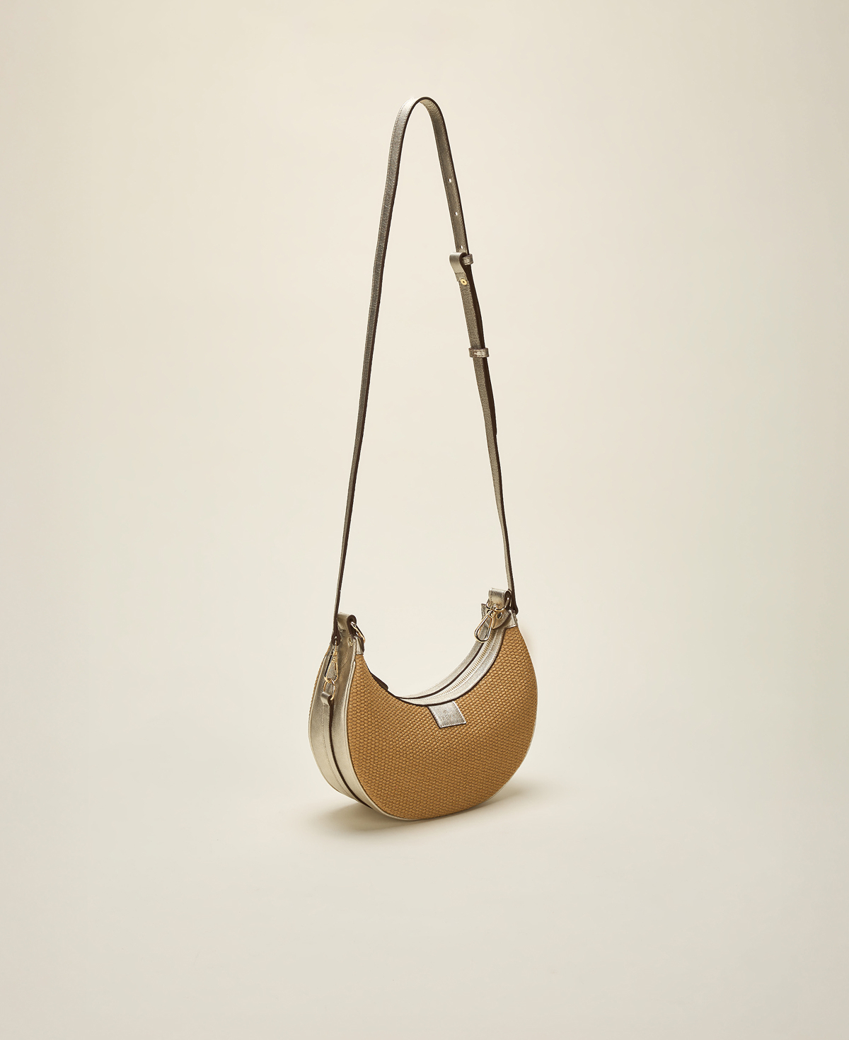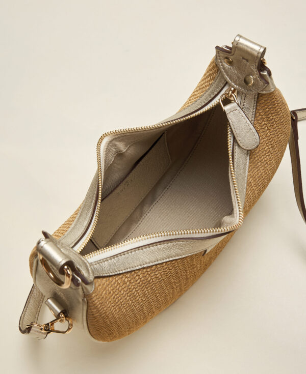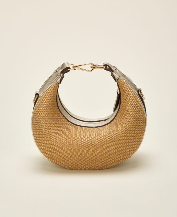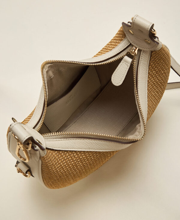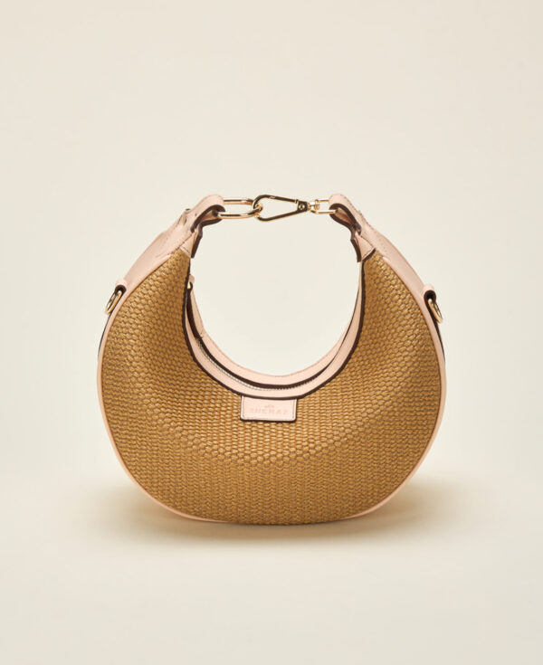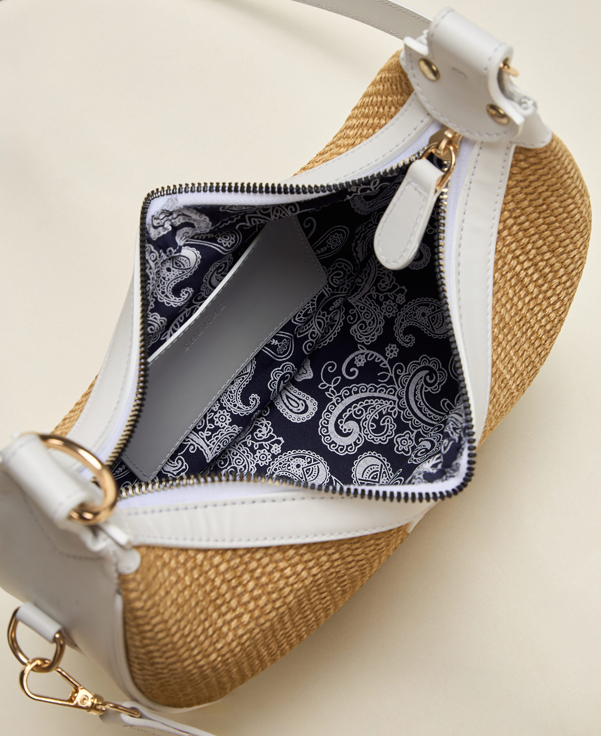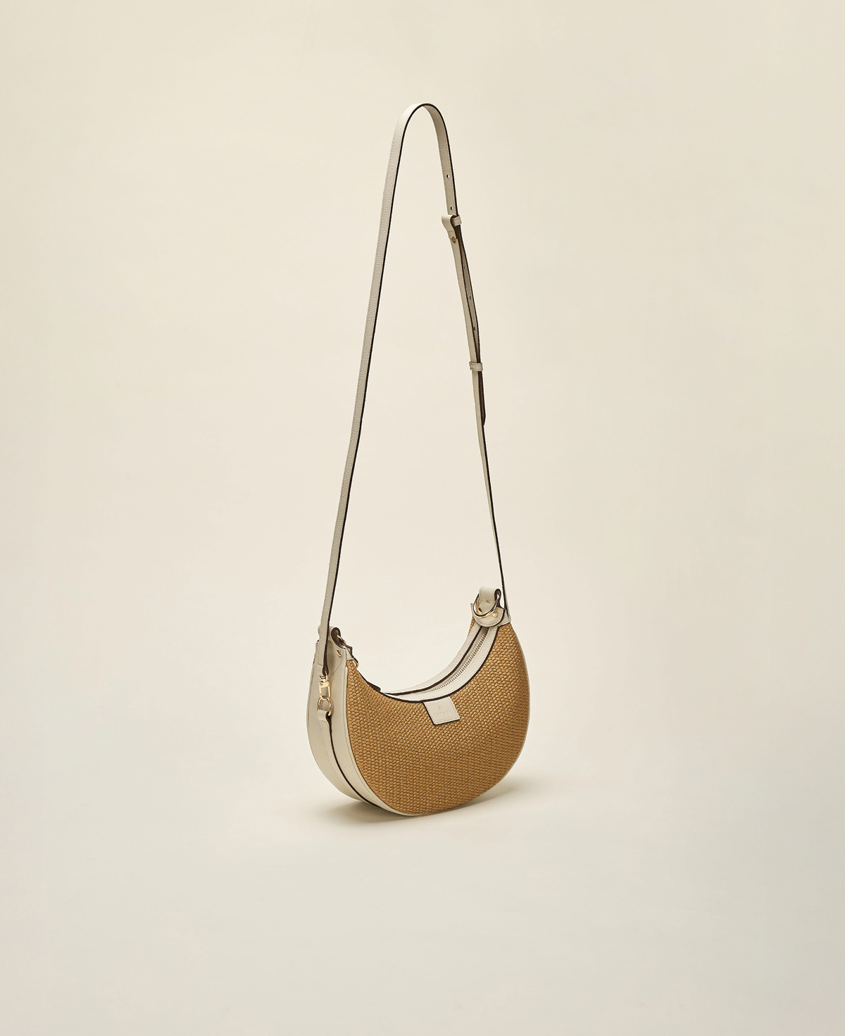 Le sac Luna Mélange allie cuir véritable et osier naturel pour un style élégant et lumineux. Sa forme arrondie inspirée de la lune et ses options de port multiples en font un compagnon raffiné et pratique au quotidien.